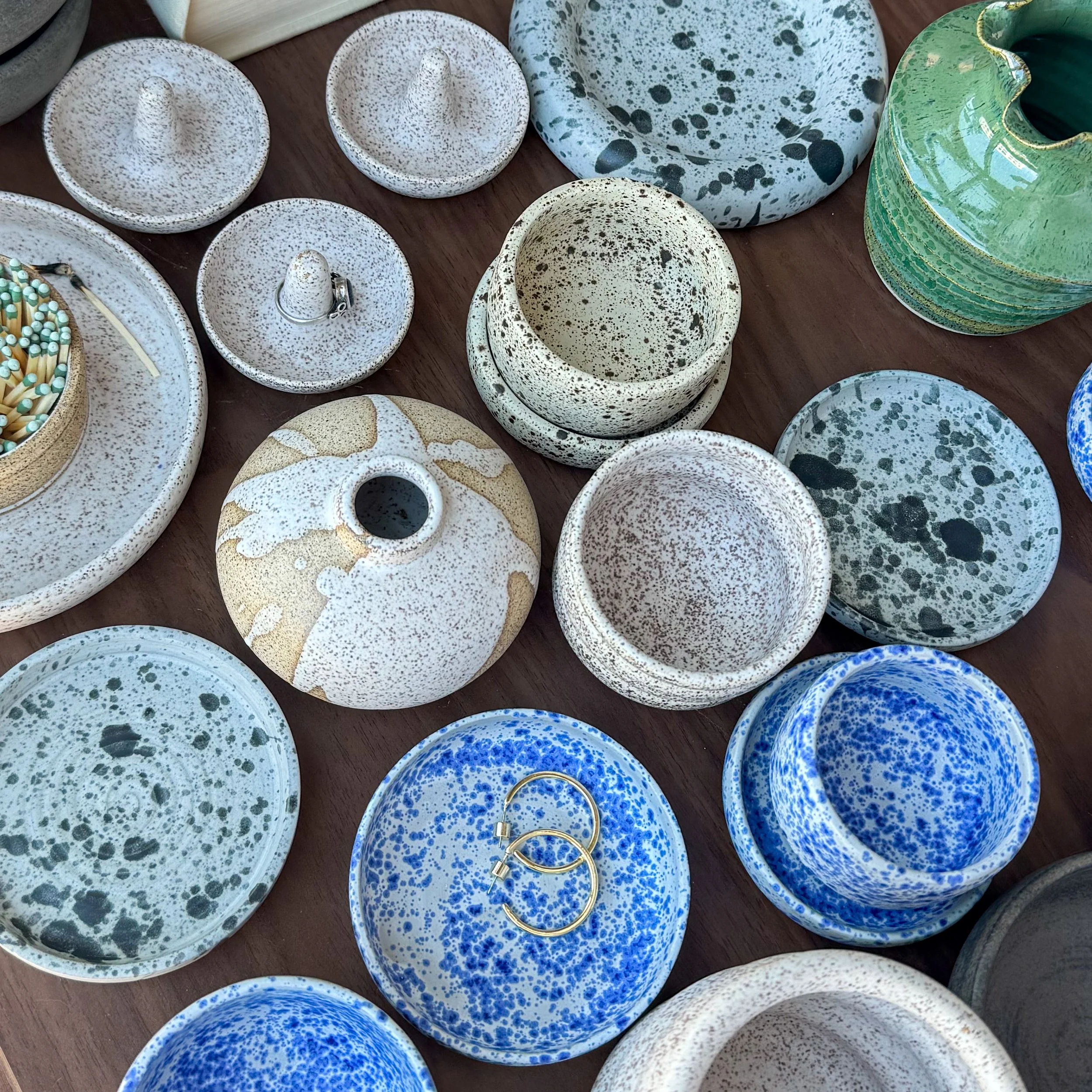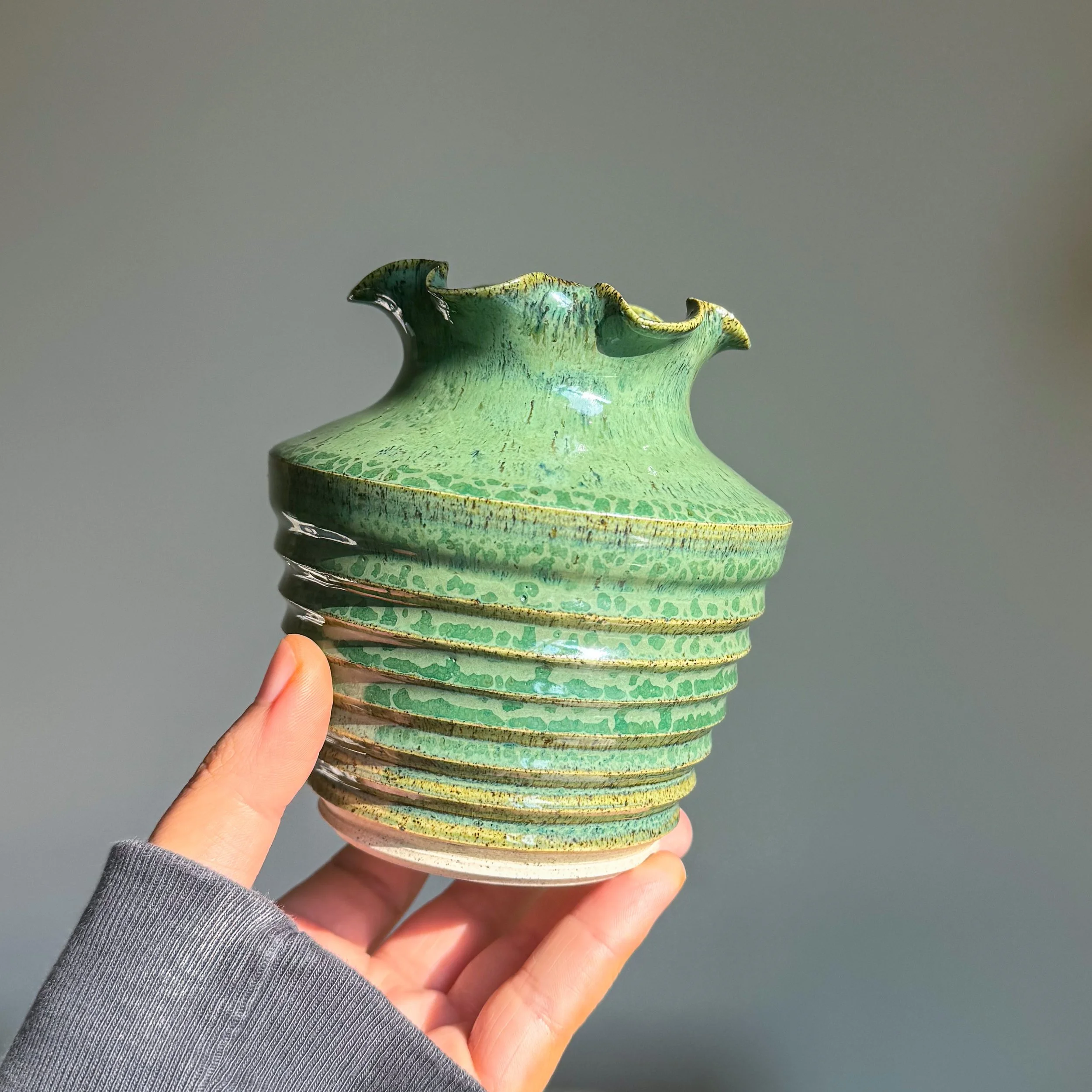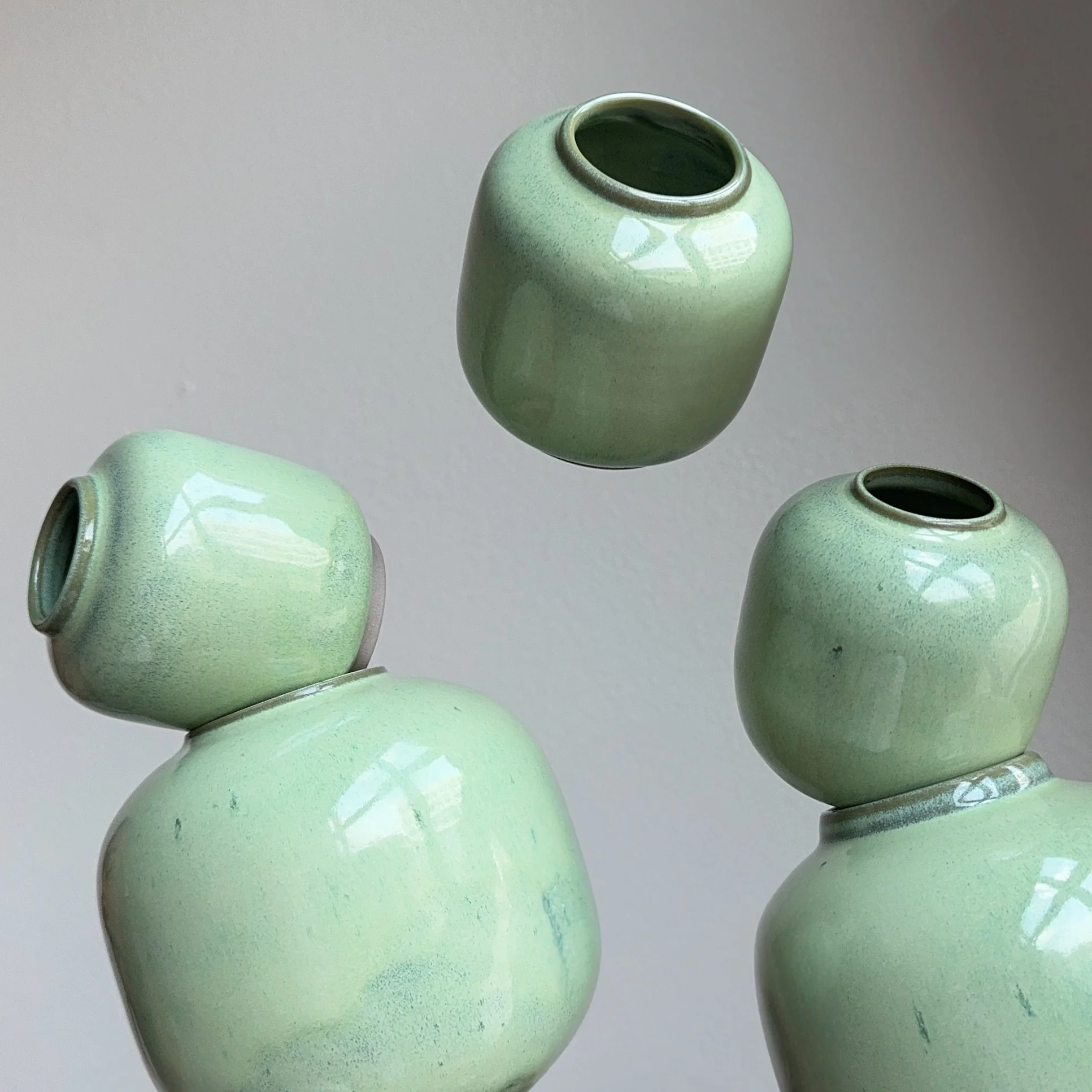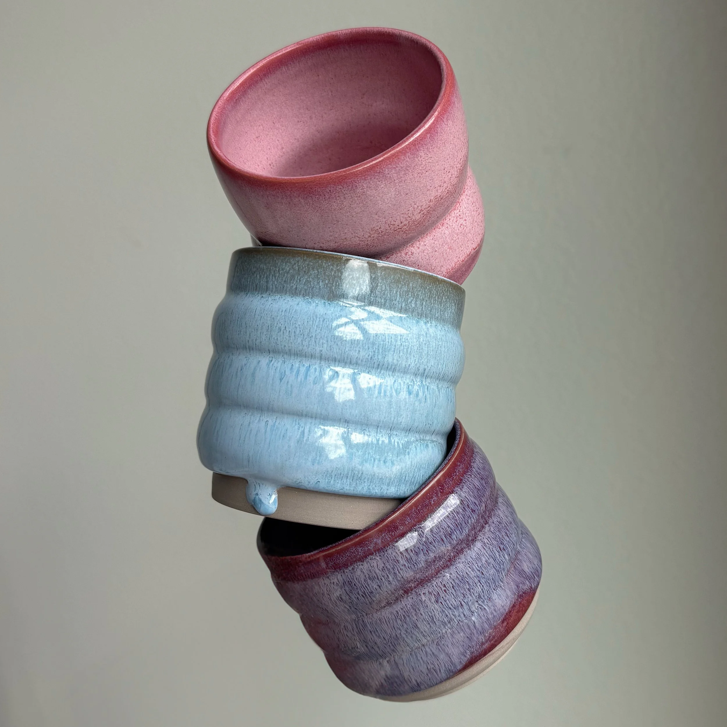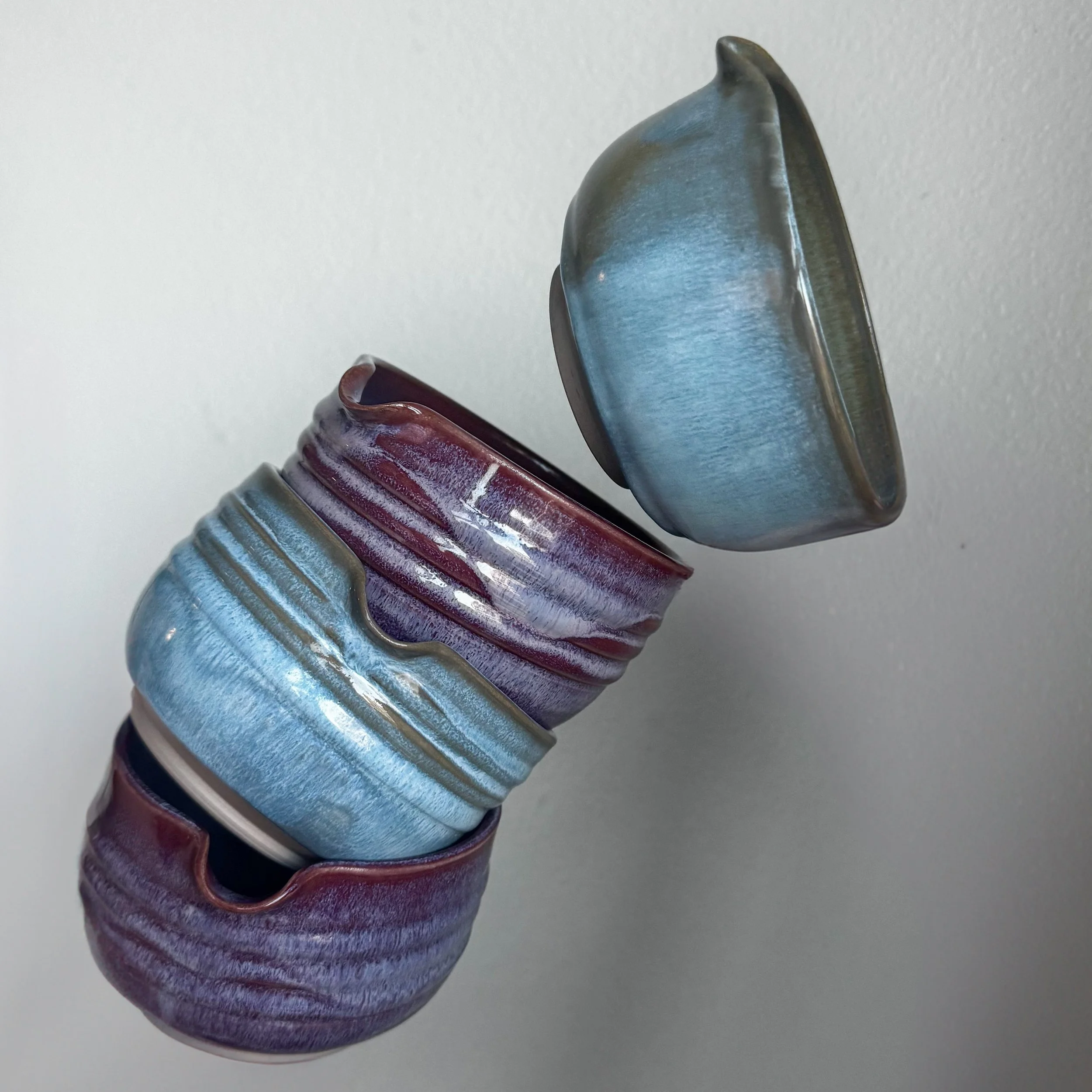 Each piece in this gallery was made between 2022 and 2025 in Detroit, Michigan. For older works, check out my instagram. I create my work on the potter’s wheel, and every piece in this gallery began the same way: as a wedged ball of clay. Over the years, I have redefined my style and techniques many times, a true reflection of the creative process.